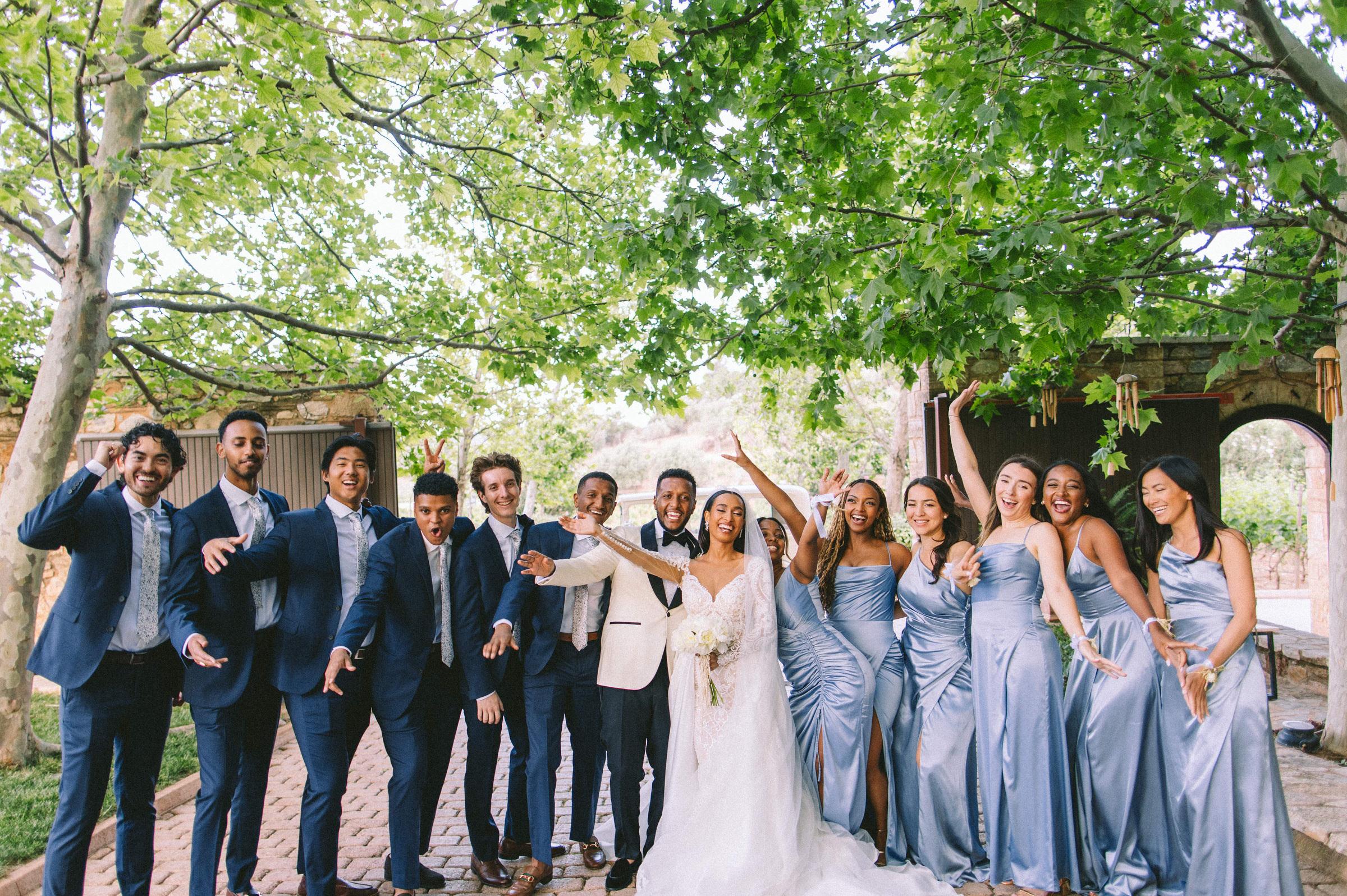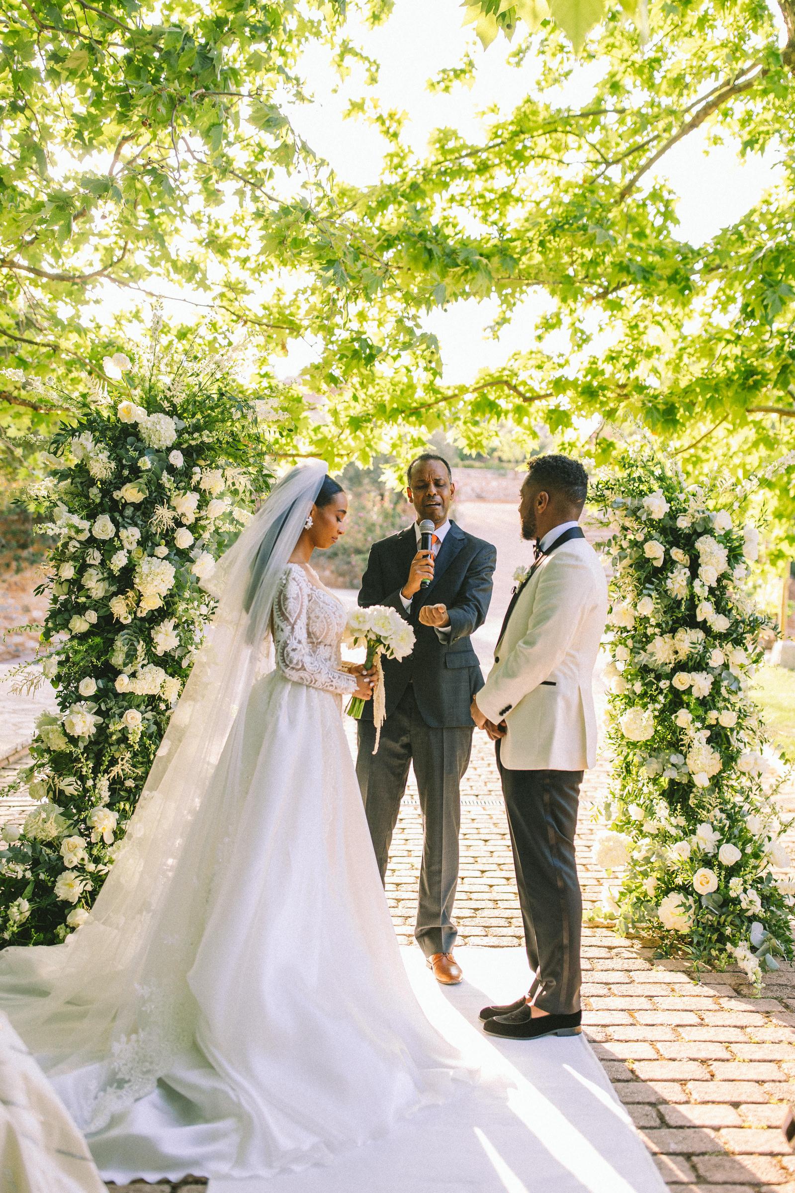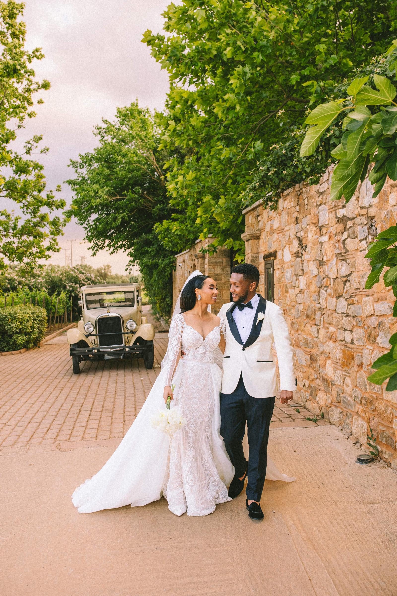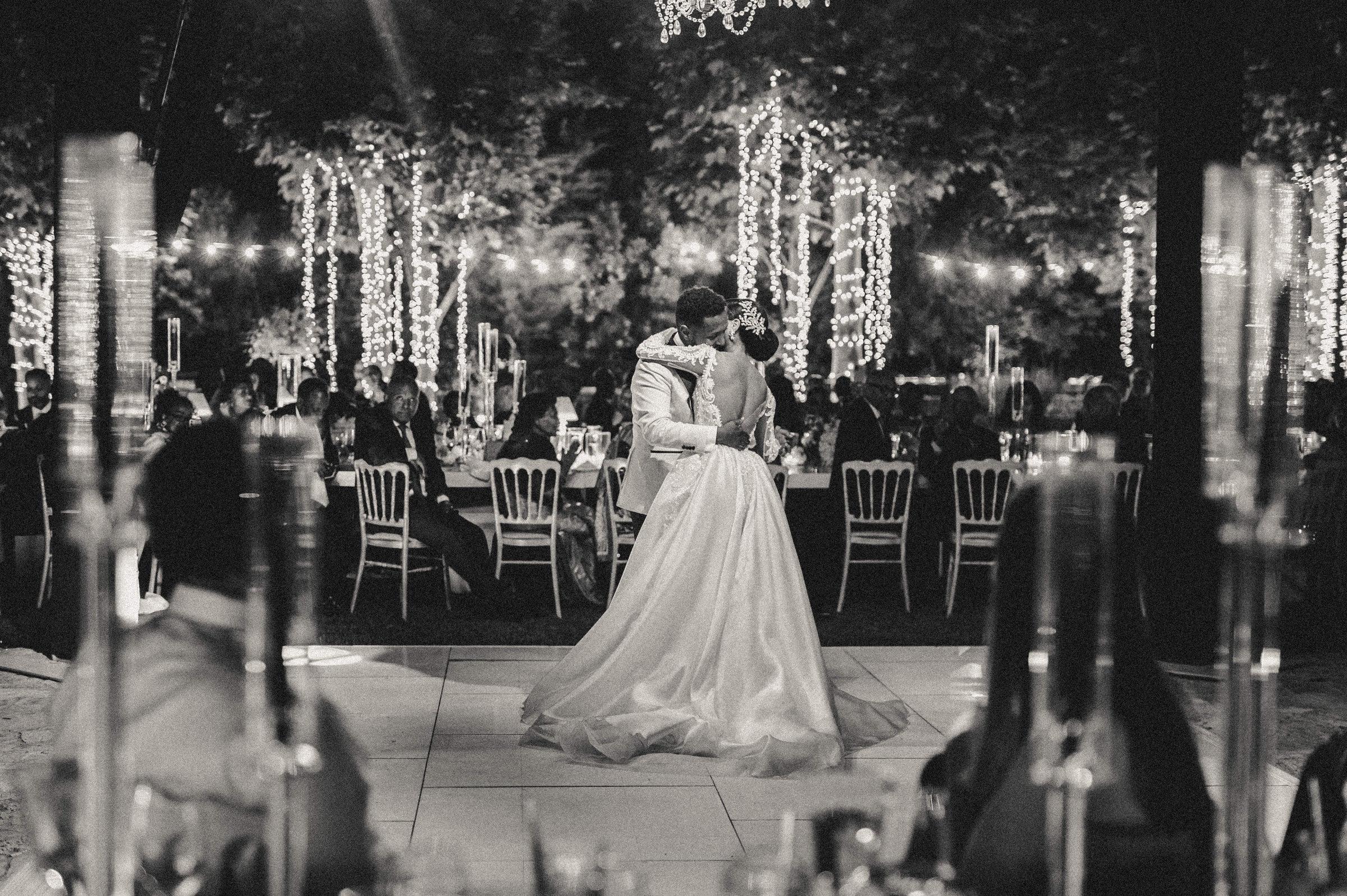 Our discerning choice led us to a picturesque property adorned with vineyards and stone buildings, providing the ideal backdrop for their black and white black-tie event. Underneath the enchanting canopy of billowing trees, their ceremony unfolded, creating a magical atmosphere that left an indelible mark on the hearts of all in attendance.