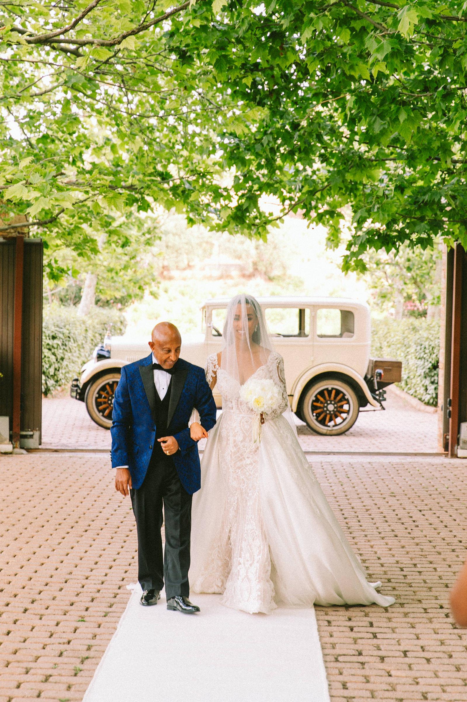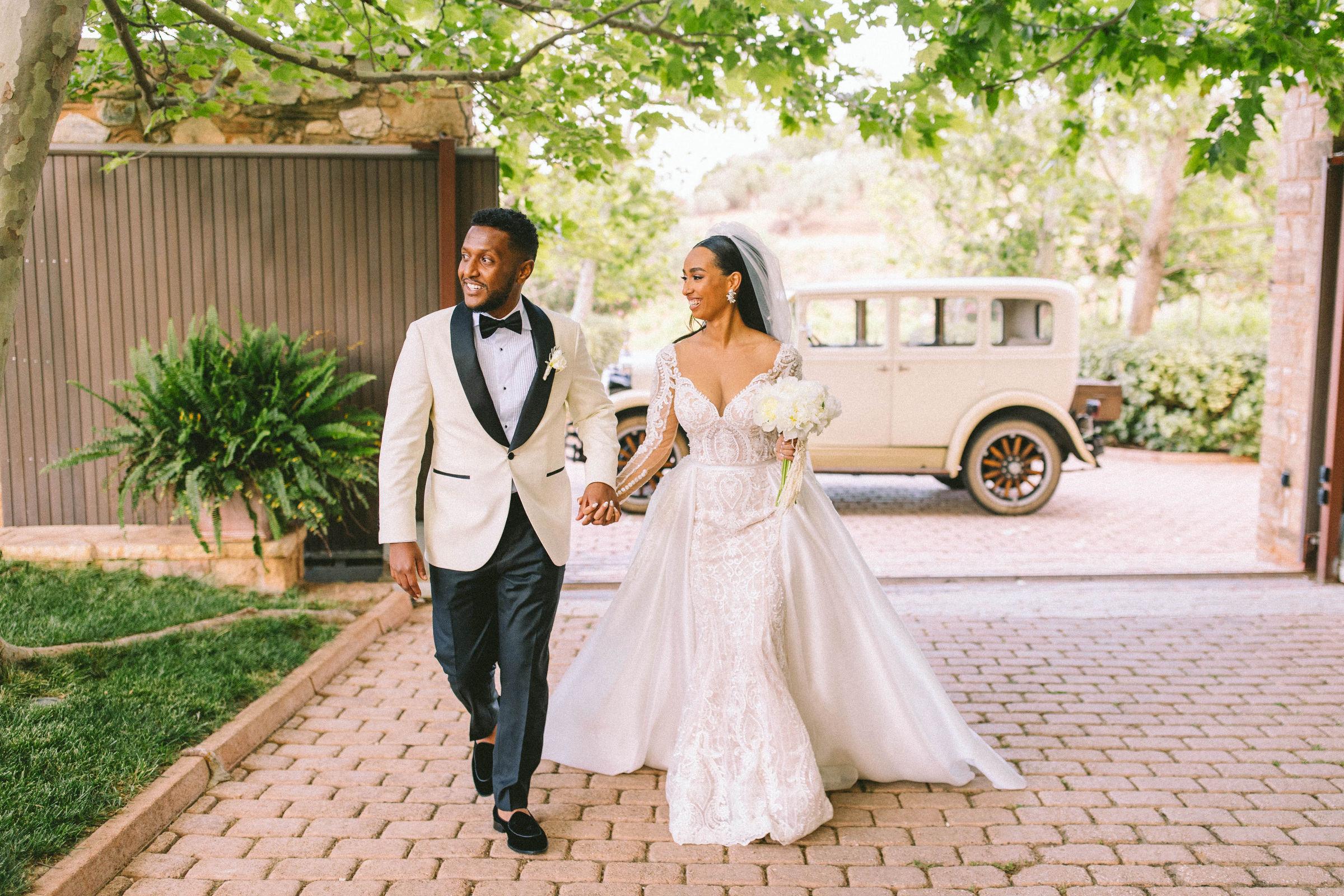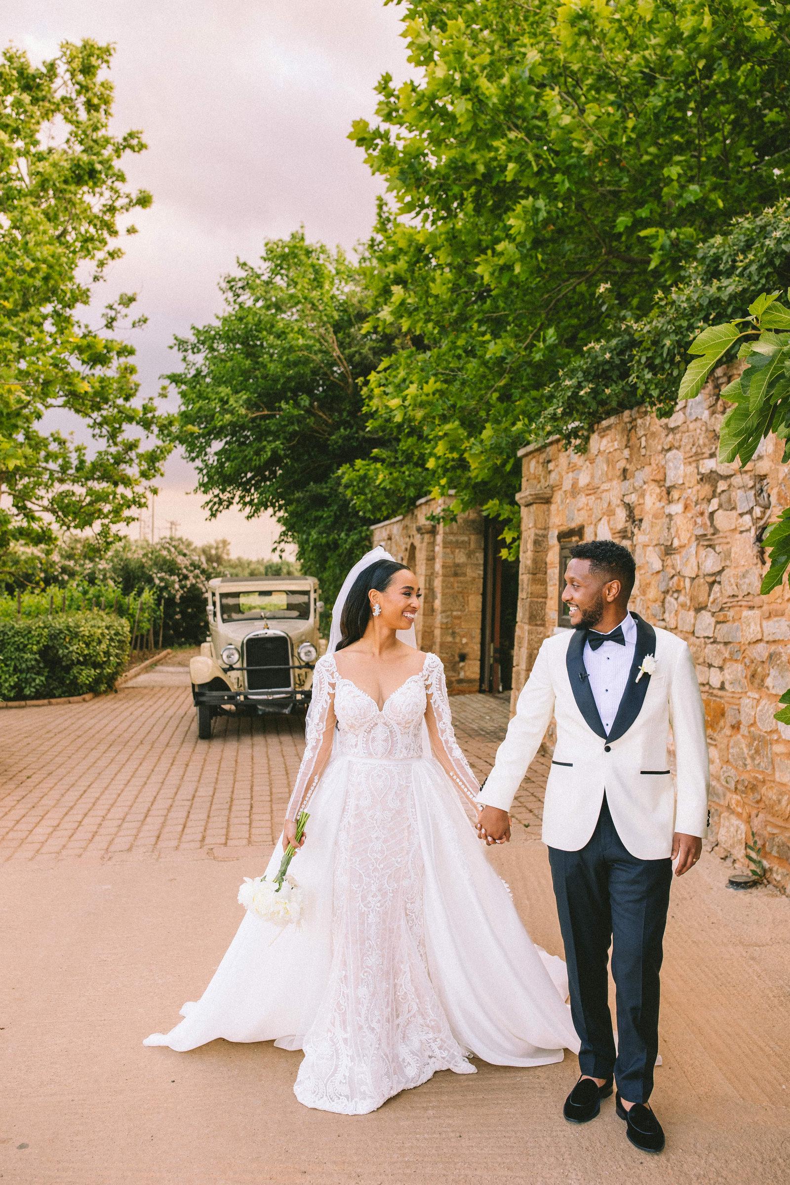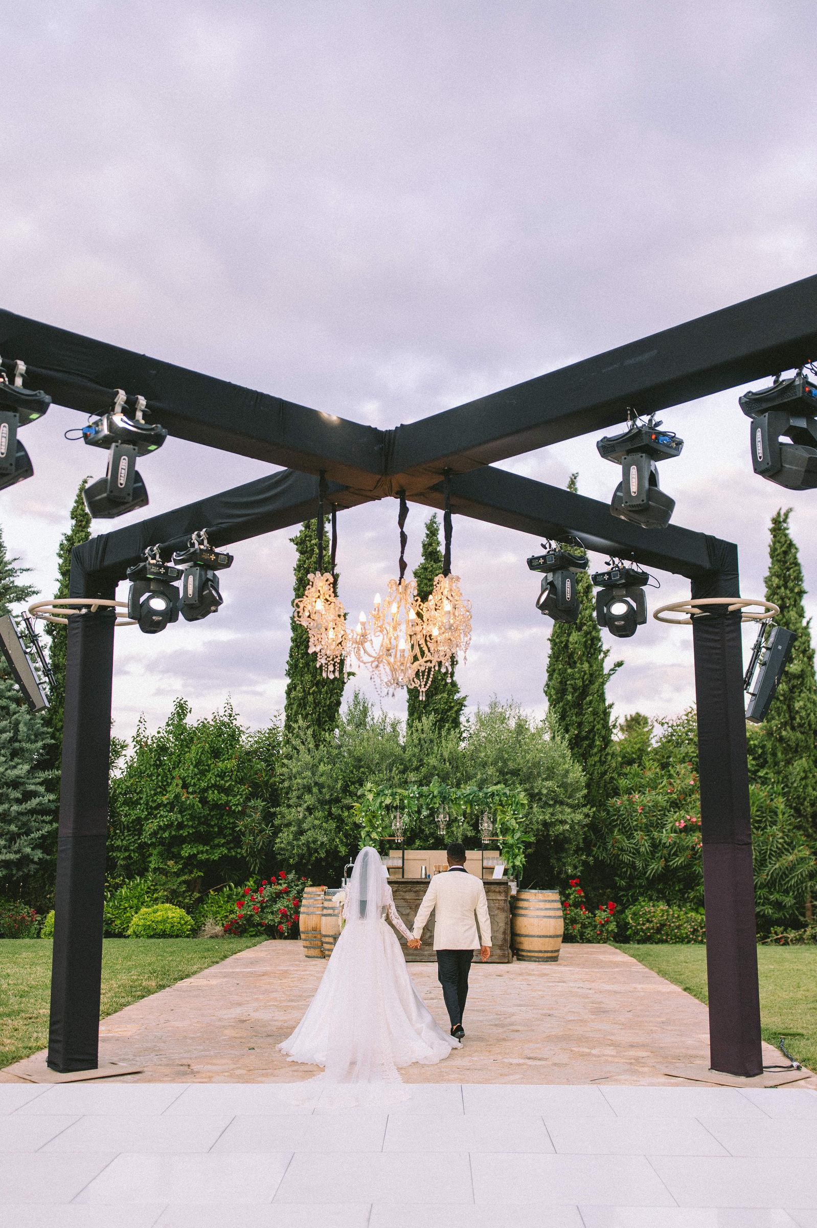 Our discerning choice led us to a picturesque property adorned with vineyards and stone buildings, providing the ideal backdrop for their black and white black-tie event. Underneath the enchanting canopy of billowing trees, their ceremony unfolded, creating a magical atmosphere that left an indelible mark on the hearts of all in attendance.