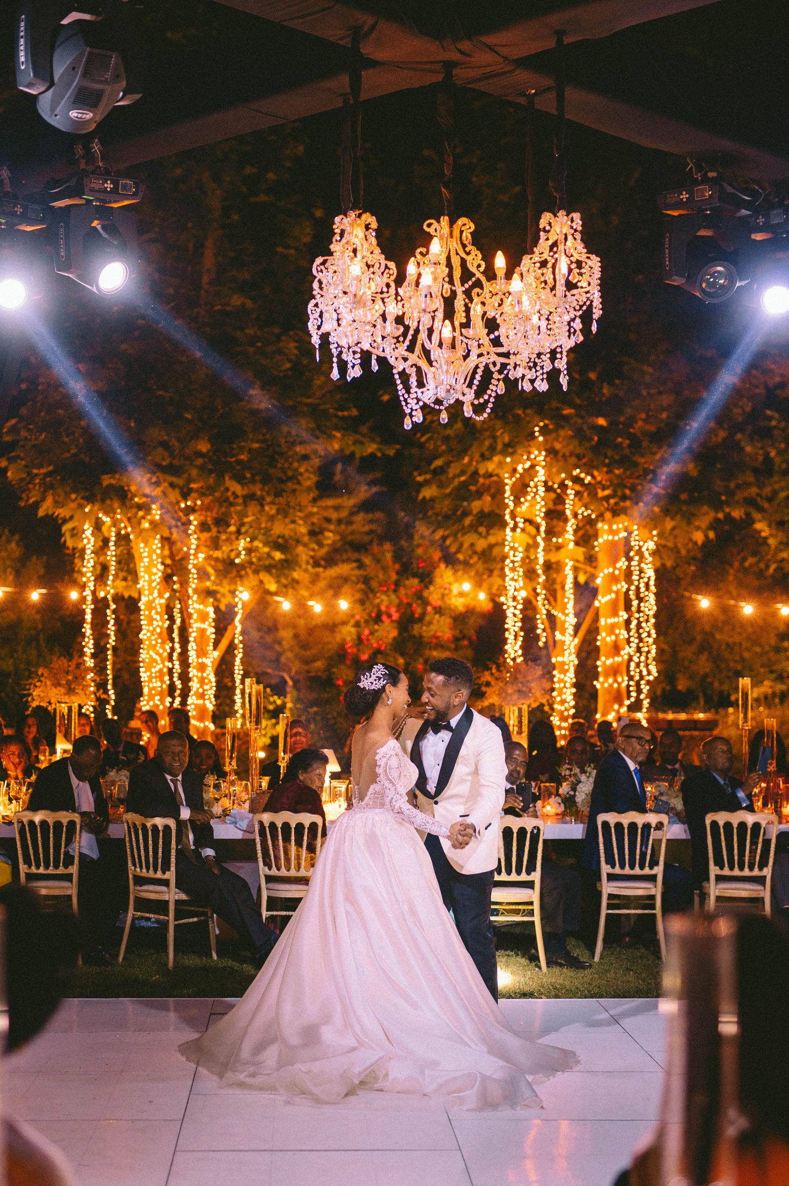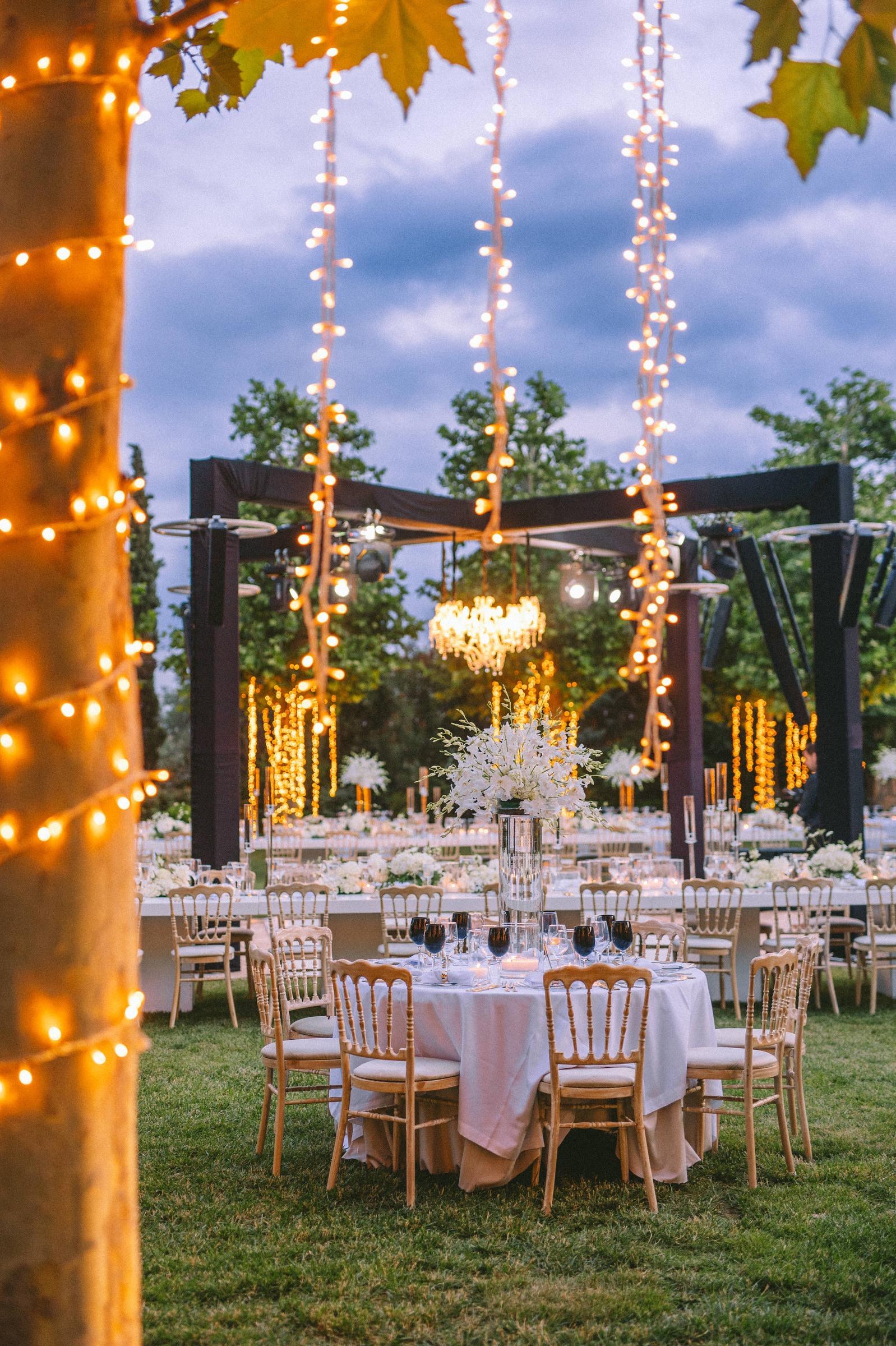 Transitioning seamlessly, the reception took place on an exquisite lawn, where trees adorned with a myriad of fairy lights added a touch of enchantment to the evening. A distinctive x-shaped structure above the dance floor became the perfect canvas for suspended chandeliers, casting a warm glow that enhanced the elegance of the affair.