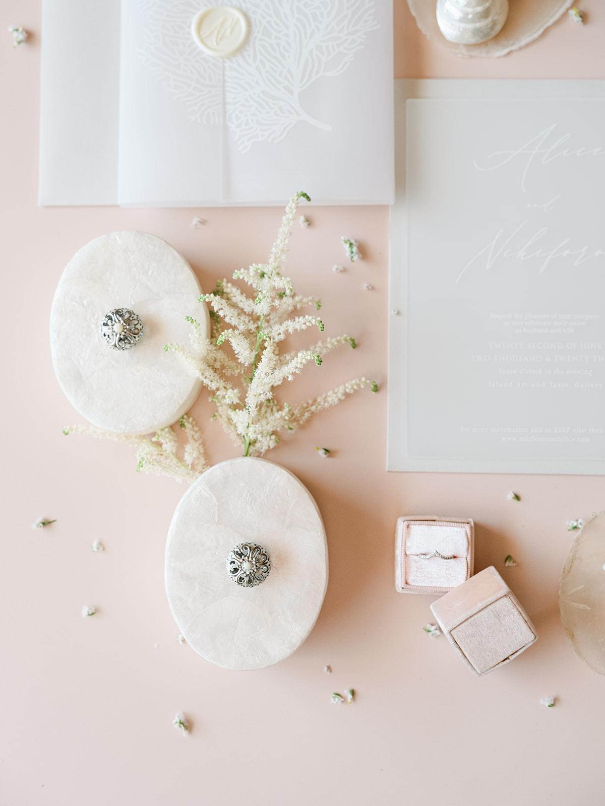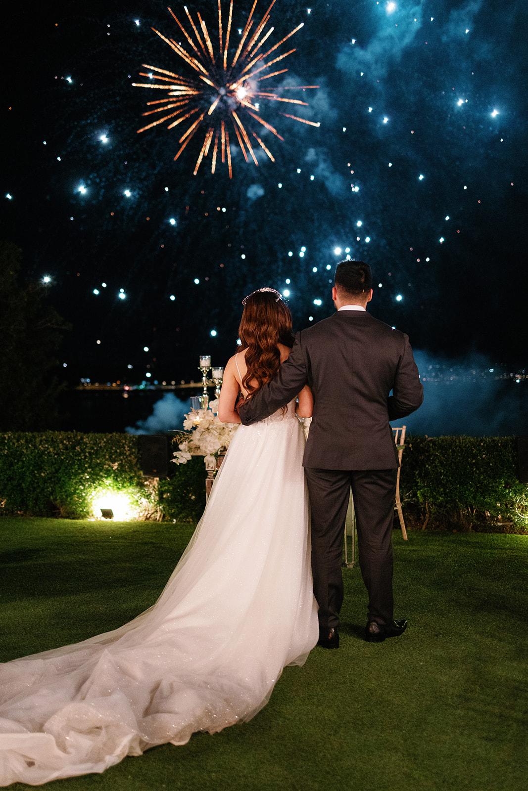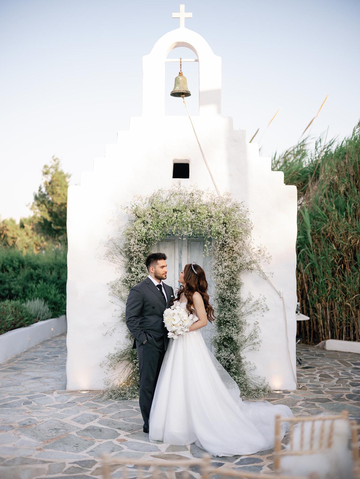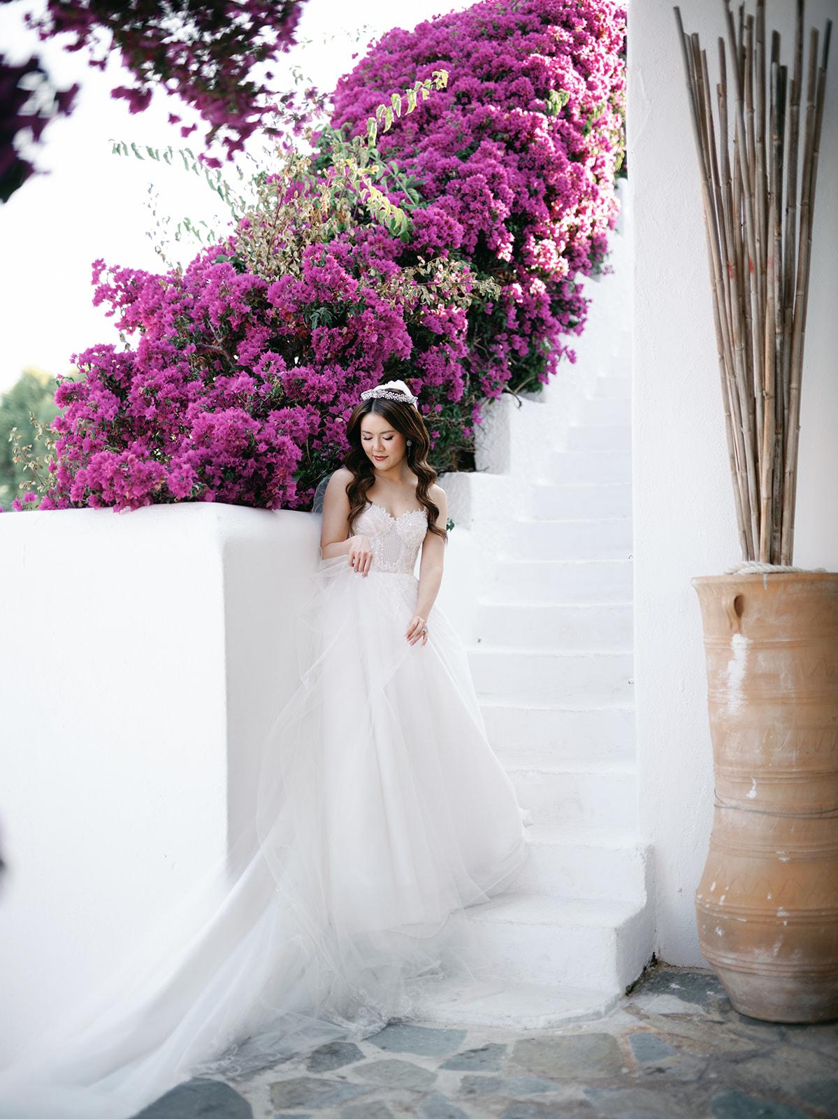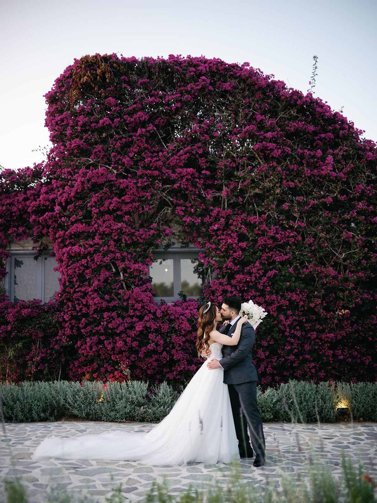 On the sun-kissed Athenian Riviera, with the Aegean Sea stretching out as far as the eye could see, a magical outdoor wedding unfolded under the theme of "Mother of Pearl Ocean." The setting was nothing short of enchanting, with a large structure gracefully hovering above the dance floor, its grandeur softened by flowing grey chiffon billowing in the gentle sea breeze. This celestial canopy set the stage for a night of love and celebration, as the bride and groom prepared to embark on their journey together.