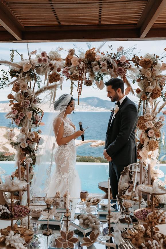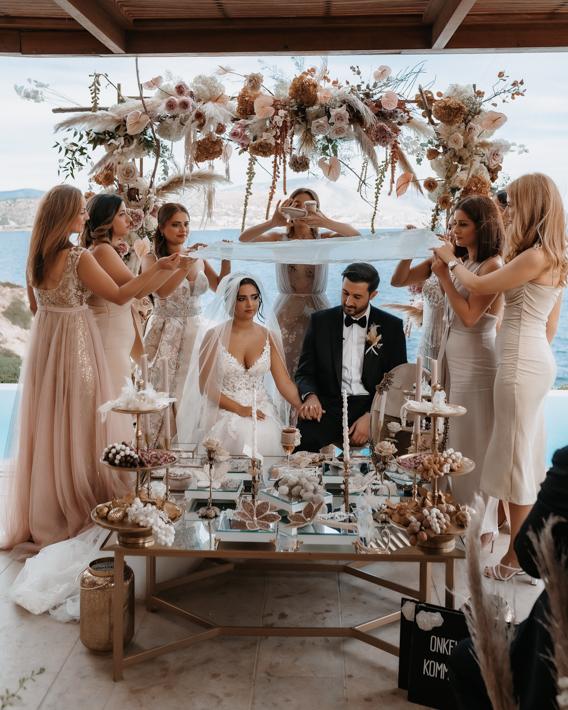 The ceremony, held at the picturesque Island Art and Taste on the Athens Riviera, was infused with special Persian traditions, adding a meaningful and cultural touch to the celebration. This thoughtful incorporation elevated the wedding beyond aesthetics, making it a deeply significant and personal experience for Shima, Baha, and their families.